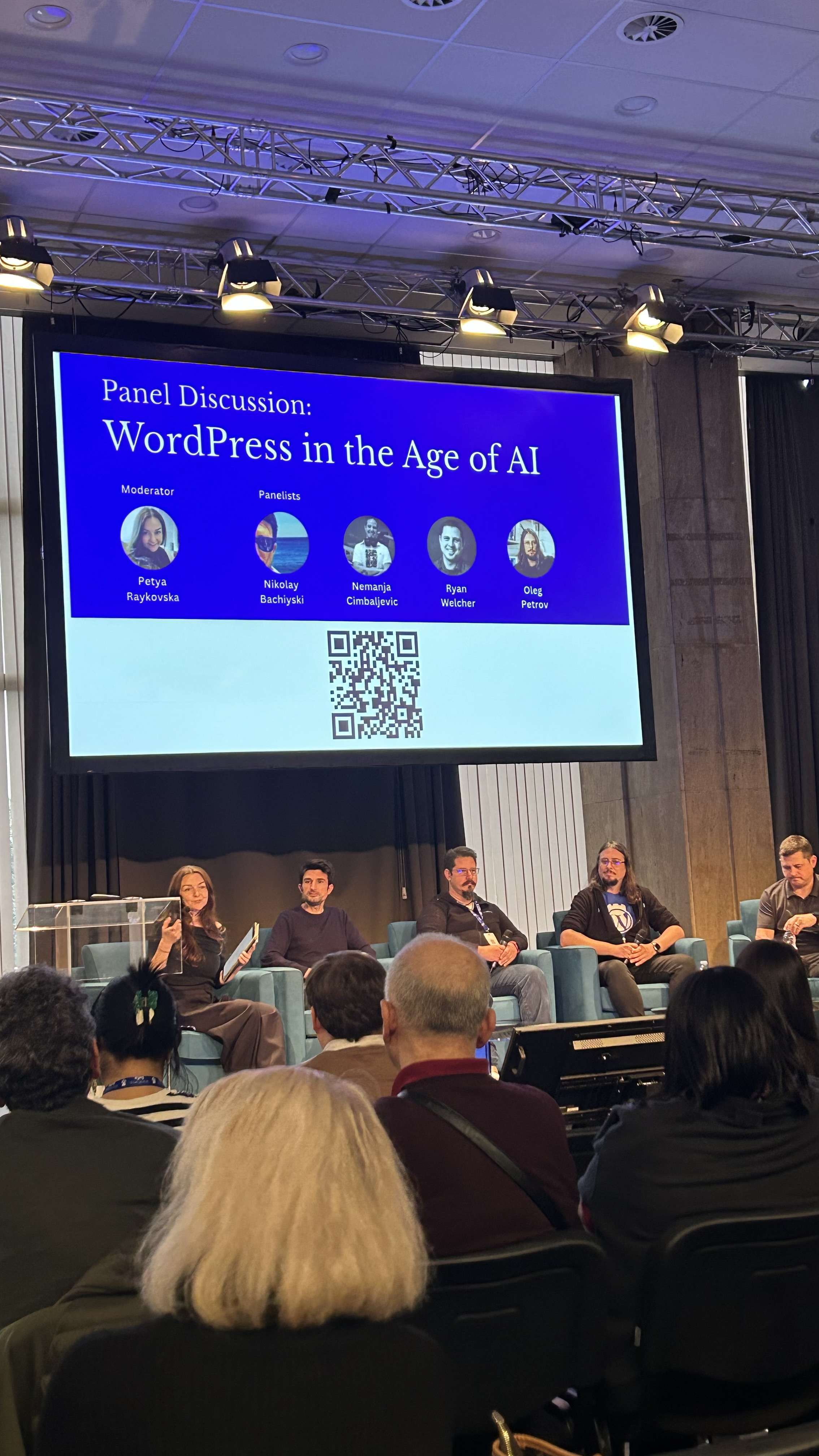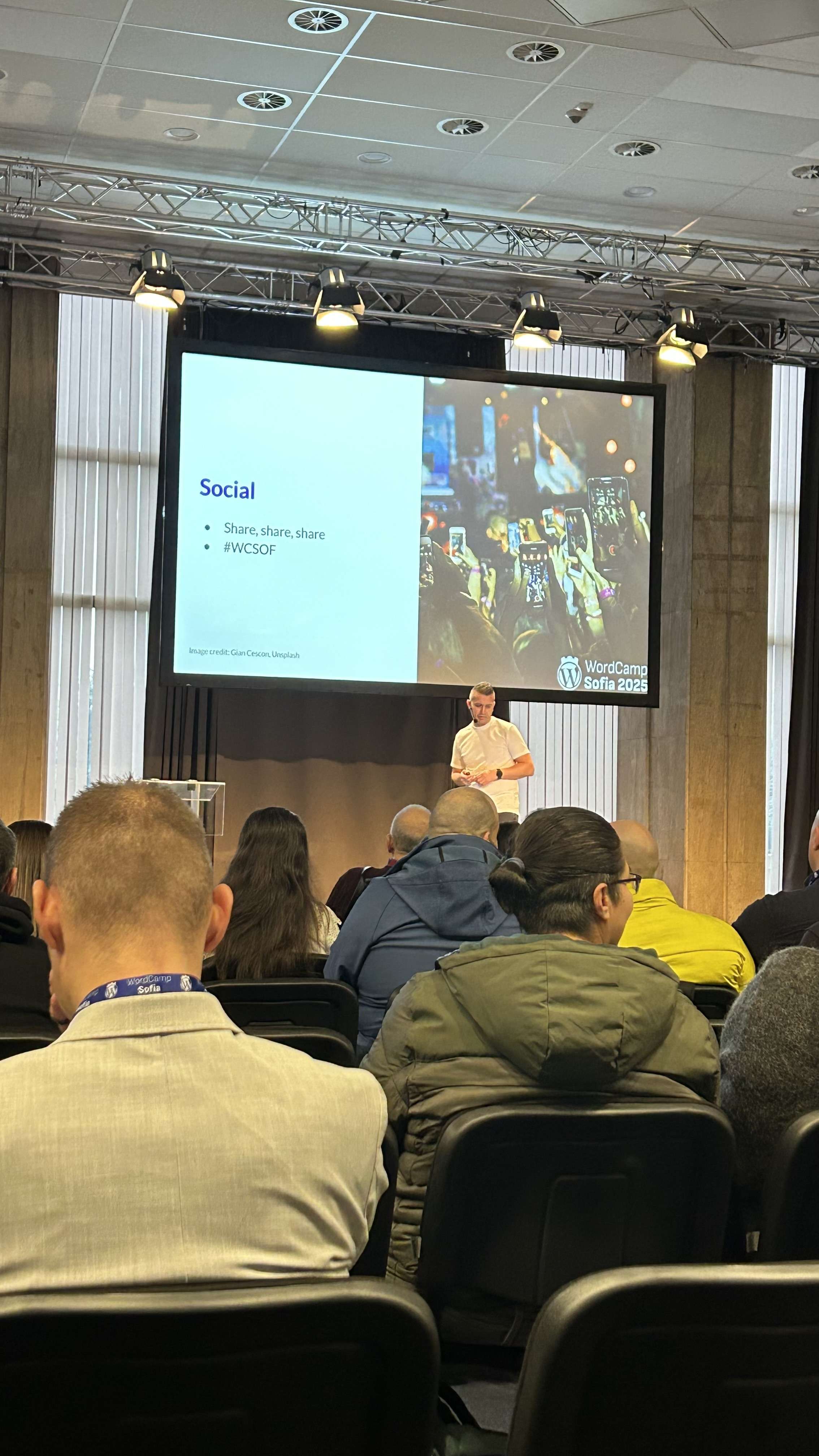 Das Programm des WordCamp Sofia war reich an wertvollen Sessions — von Marketingthemen über die Zukunft von AI bis hin zu Entwicklungen im WordPress-Ökosystem. Besonders interessant waren für uns Vorträge zu Marketingstrategien und der Rolle von AI bei der Entwicklung von Websites und Hosting-Diensten. Außerdem hörten wir ein Diskussionspanel, das spannende Einblicke in Branchentrends, Kundenanforderungen und die Rolle von Hosting in den kommenden Jahren bot.